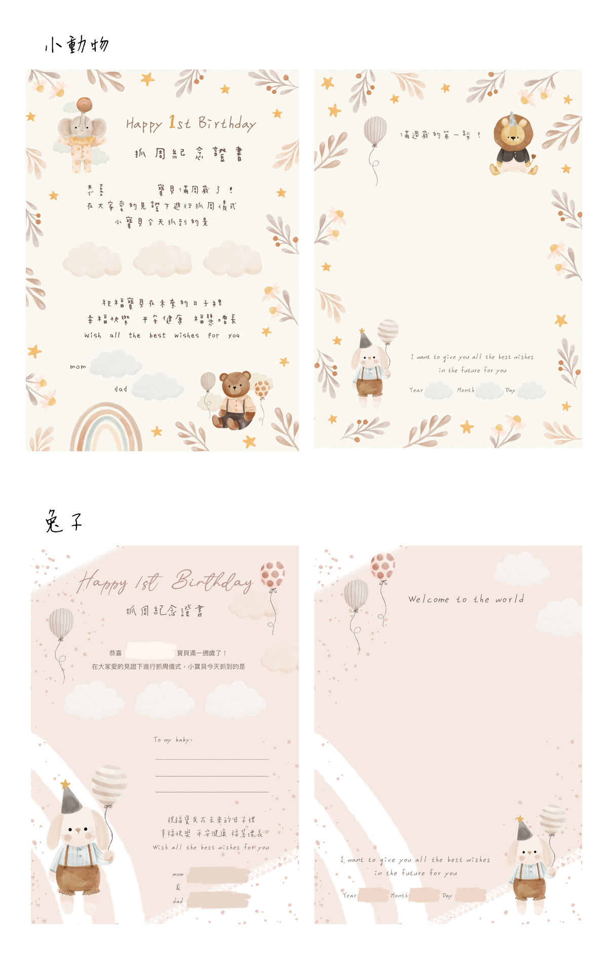 ❥ 可愛動物證書夾+兩張A4證書(單面印刷,可挑選款式)